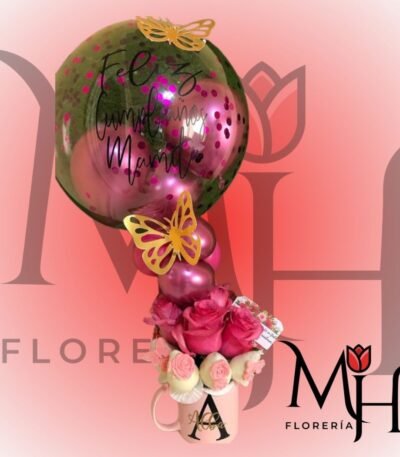 Box 30 rosas ecuatorianas, coronita y globo burbuja