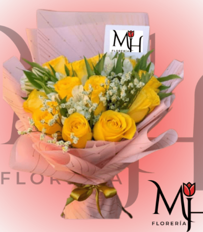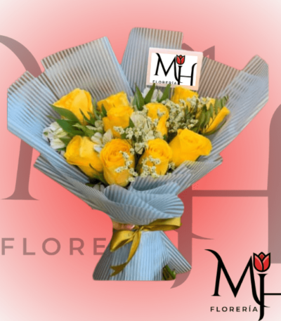 Ramo cono 10 Rosas amarillas jabón y linda envoltura