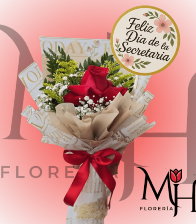 PARA LA SECRETARIA RAMO 1 ROSA Y TOPPER