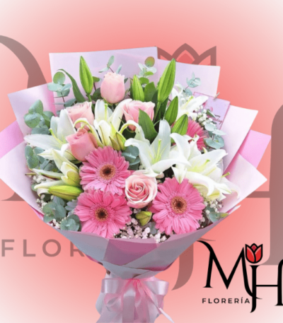 ESPECTACULAR RAMO 5 ROSAS 5 LILIUM 5 GERBERAS
