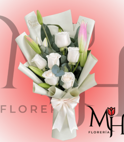 PRECIOSO RAMO DE 6 ROSAS 3 LILIUM