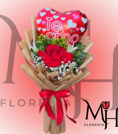 LINDO DETALLE 1 PEONIA + LLAVERO Y GLOBO