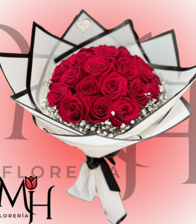 Ramo de 24 Rosas importadas, gypsophila y linda envoltura