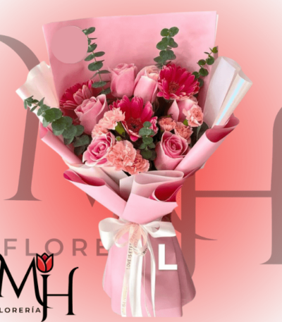 Ramo de 5 rosas, 3 gerberas, flores de temporada, follaje y linda envoltura