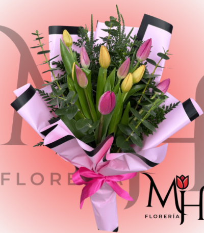 Ramo extendido de 10 Tulipanes, follaje y linda envoltura