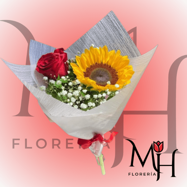 RAMO ESPECIAL PARA EL DIA DE LA MUJER 1 ROSA 1 GIRASOL MEZCLA PERFECTA