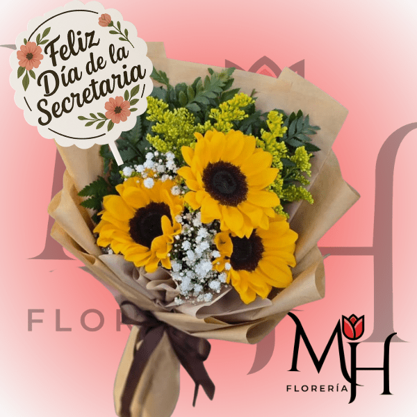 PARA LA SECRETARIA RAMO 3 GIRASOLES Y TOPPER