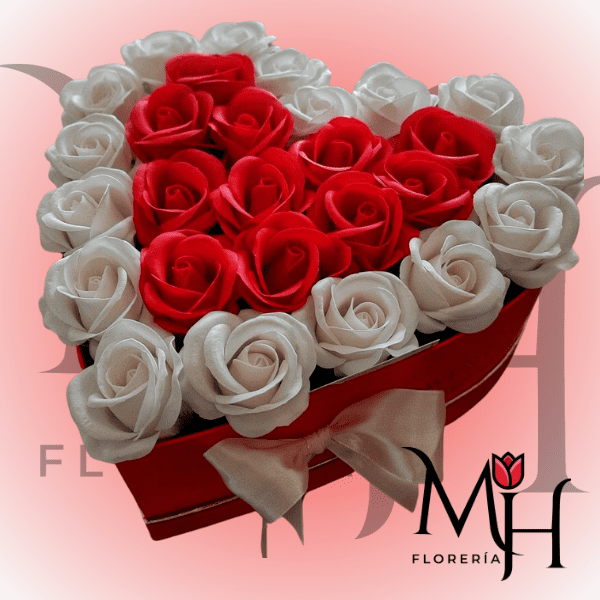 CAJA CORAZON 30 ROSAS JABON