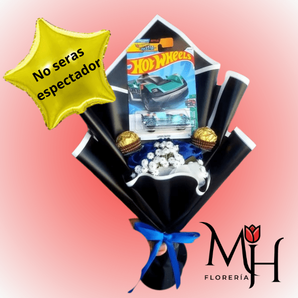 Regalo Para mi Novio 1 Carrito Hot Wheels 2 Rosa Azules Globo y 2 Bombones