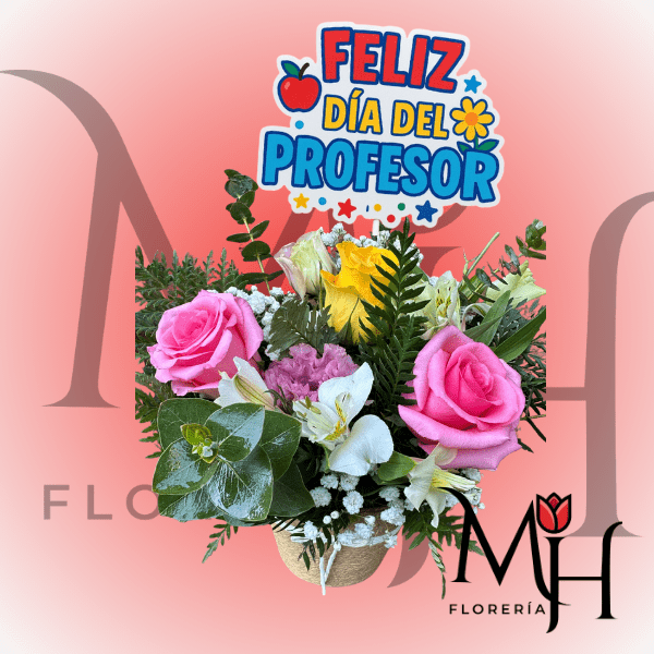 Dia Del Profesor Arreglo 5 Rosas y Topper