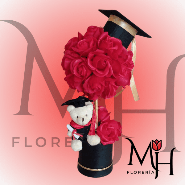 Box Topiario 30 rosas de Jabon y Peluche 20 cm
