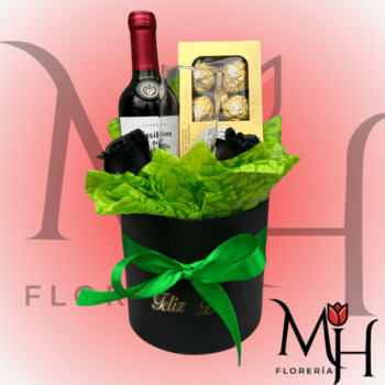 Box Papá con vino de 375ml, copa de vino, bombones ferreros Rocher y 2 rosa jabón