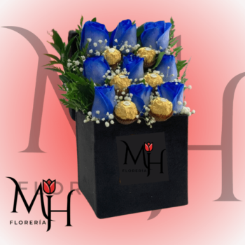 Caja Box Papá 9 Rosas azules y 6 bombones
